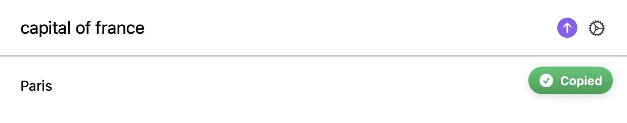 Press Ctrl Space, type, the answer streams in and lands on your clipboard. 100% on your Mac. No Wi-Fi, no account, no bill, no limits.