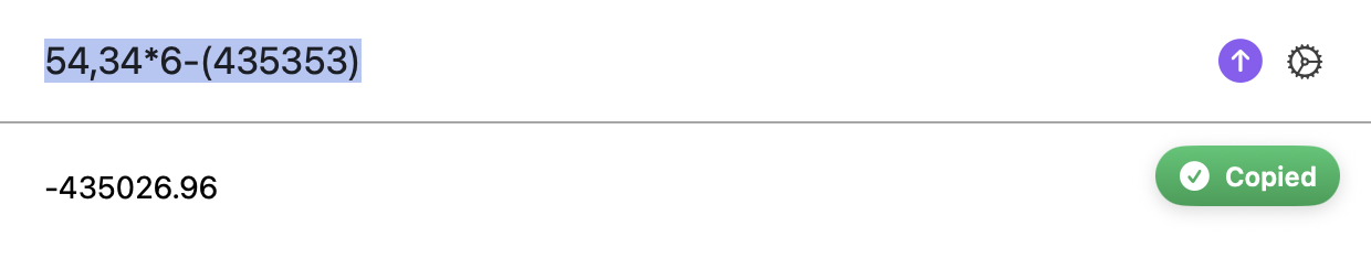 Supports: + − × ÷ ^ %, parentheses, unary minus, European decimal commas (3,14), sqrt, sin, cos, tan, log, ln, abs, floor, ceil, round, and the constants pi and e.
